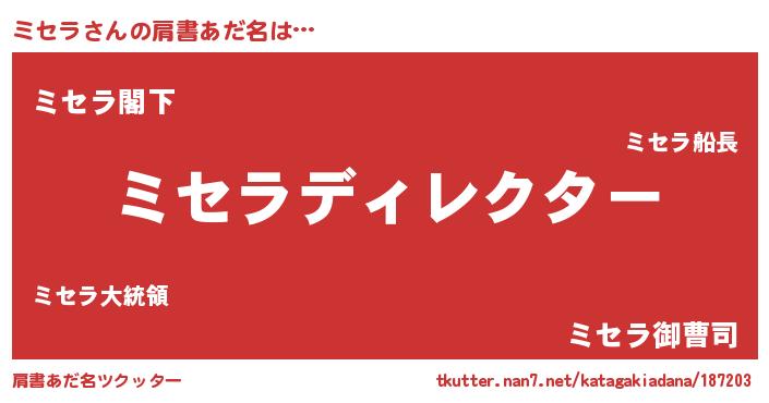 | ヒーロー風カッコイイあだ名 | 『ウルトラ戦士ミセラ』『スーパーミセラ』 |
