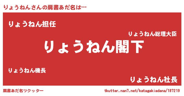 | 男性向けラノベタイトル風あだ名 | 『Re:りょうねんから始める異世界生活』 |