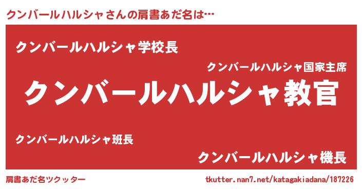 | 男性向けラノベタイトル風あだ名 | 『この素晴らしい世界にクンバールハルシャを!』 |