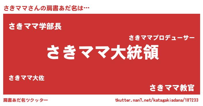 | 欧米人風あだ名 | 『さきママクリステル』 |