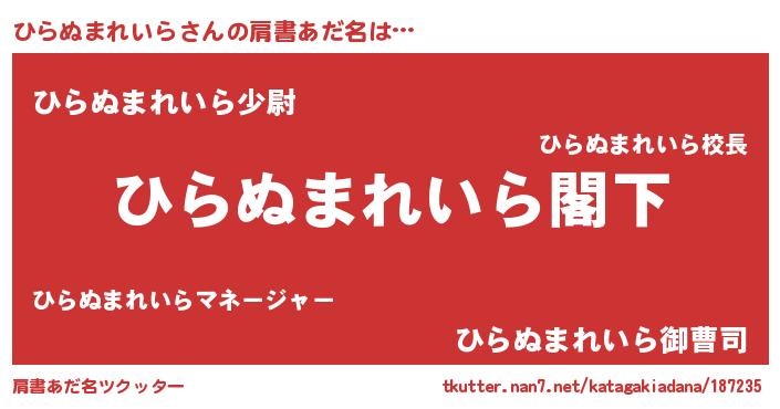 | ヘコむあだ名 | 『ひらふぇ~』『ひらぬまれいら(笑)』 |