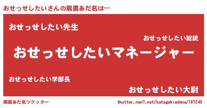 | ヘコむあだ名 | 『おせっせしたい(笑)』『おせにー』 |