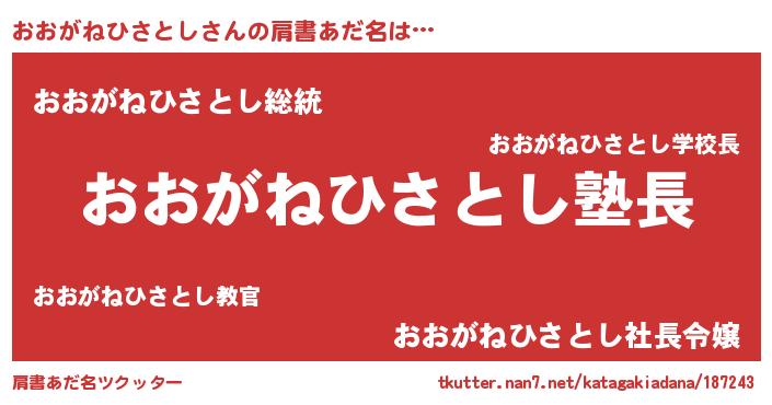| 意味不明あだ名 | 『とにかく怪しいおおがねひさとし』 |