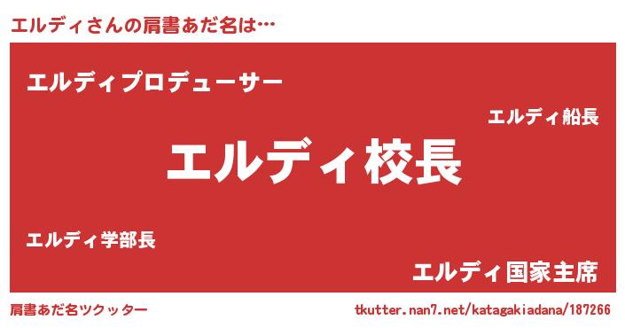 | ファンタジー風あだ名 | 『エルディッシュ』『カークエルラー』 |