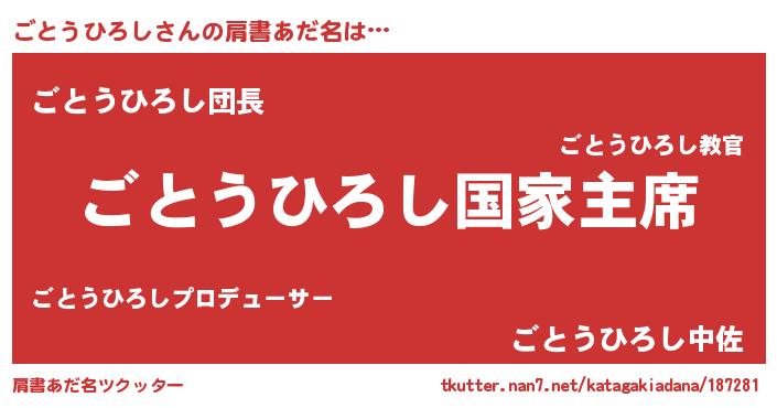 | ポケモン風あだ名 | 『ゴトウダネ』『ヒゴトウヒロシ』 |