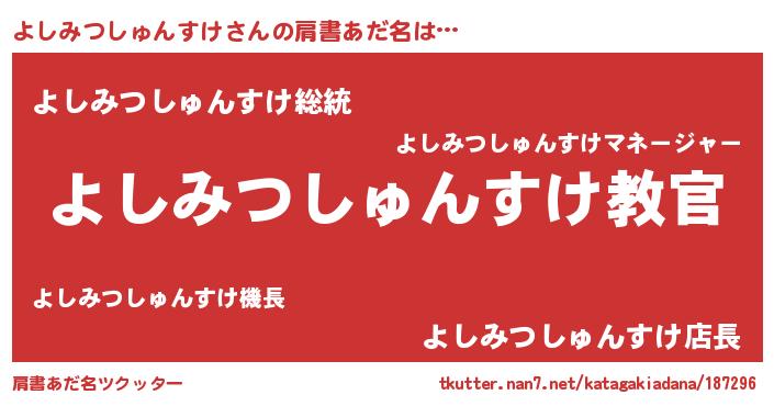 | 意味不明あだ名 | 『住所不定無職よしみつしゅんすけ(41歳)』 |