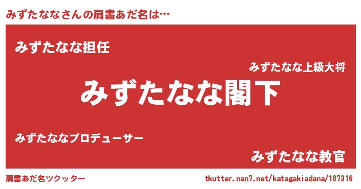 | 女子向けラノベタイトル風あだ名 | 『みずたなななんてお断りですっ。』 |