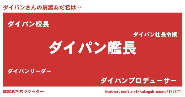 | ヘコむあだ名 | 『ダイパン(笑)』『ダイにゅー』 |