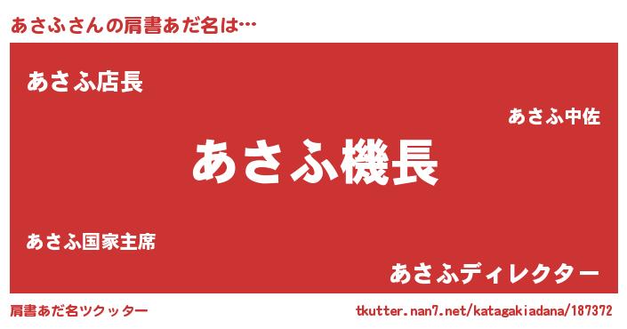 | 欧米人風あだ名 | 『あさふ・ステッグマイヤー』 |