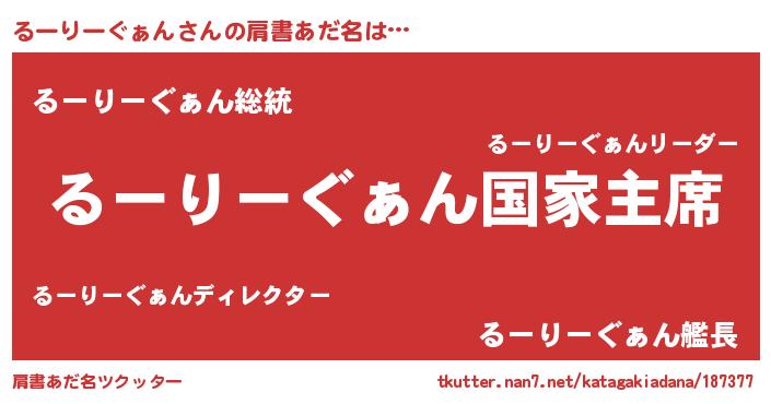 | 欧米人風あだ名 | 『るーりーぐぁんクリステル』 |