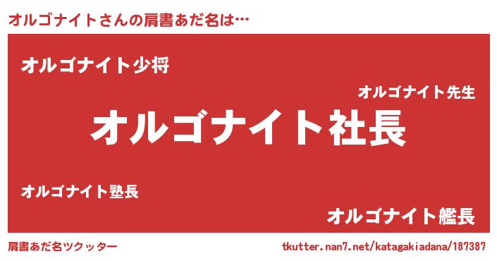 | ヘコむあだ名 | 『オルにー』『オルゴナイト(苦笑)』 |