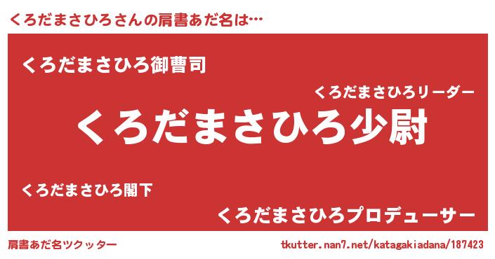 | 男性向けラノベタイトル風あだ名 | 『転生したらくろだまさひろだった件』 |