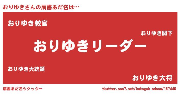 | 意味不明あだ名 | 『とにかく怪しいおりゆき』 |