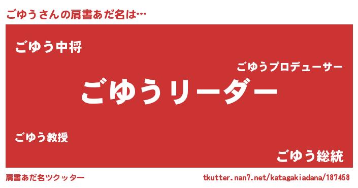 | ポケモン風あだ名 | 『ヒゴユウ』『ゴユキング』 |