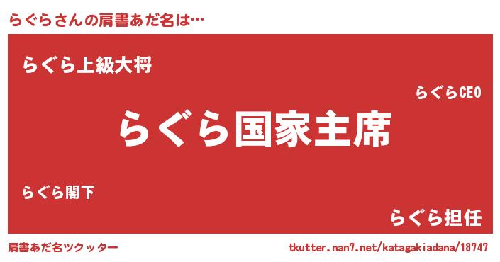 | 意味不明あだ名 | 『らぐらフォーエバー』『永久保存らぐら』 |