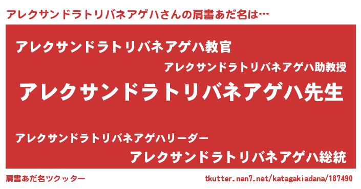 欧米人風あだ名 | 『ダルビッシュアレクサンドラトリバネアゲハ』 |