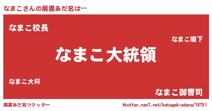 | 可愛いあだ名 | 『なまちー』『なまこママ』 |