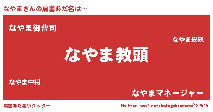 | 胡散臭い通販商品みたいなあだ名 | 『来世でも幸せになれる健康食品…その名も「なやま」』 |
