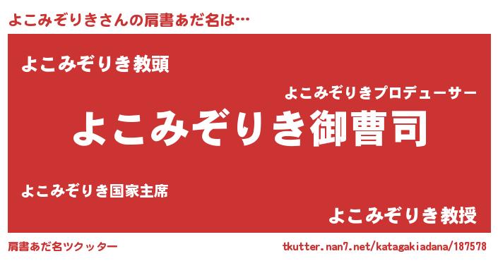 | 男性向けラノベタイトル風あだ名 | 『よこみぞりきの憂鬱』 |