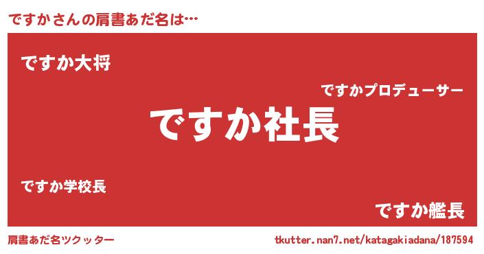| 男性向けラノベタイトル風あだ名 | 『ですかの憂鬱』『はたらくですかさま!』 |