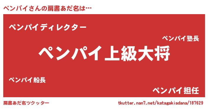 | 意味不明あだ名 | 『ヨモギ科ペンパイ属』『自称ペンパイ』 |