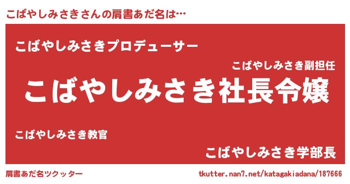 | ヘコむあだ名 | 『こばもー』『こばやしみさき(遠い目)』 |