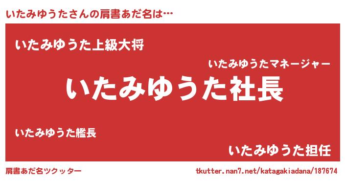 | 男性向けラノベタイトル風あだ名 | 『いたみゆうたの憂鬱』 |