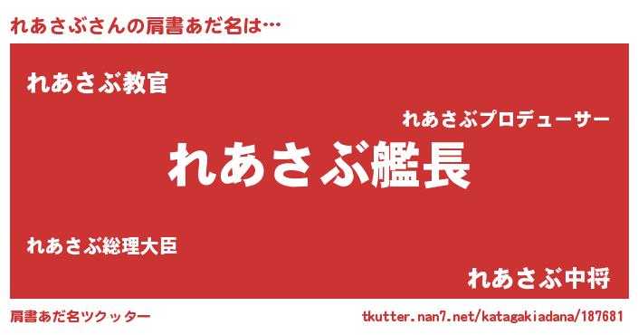 | ヒーロー風カッコイイあだ名 | 『仮面レアダー』『ウルトラれあさぶマン』 |