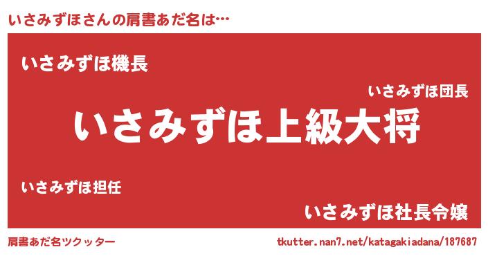 | 男性向けラノベタイトル風あだ名 | 『いさみずほ~年齢イコール彼女いない歴の魔法使い~』 |