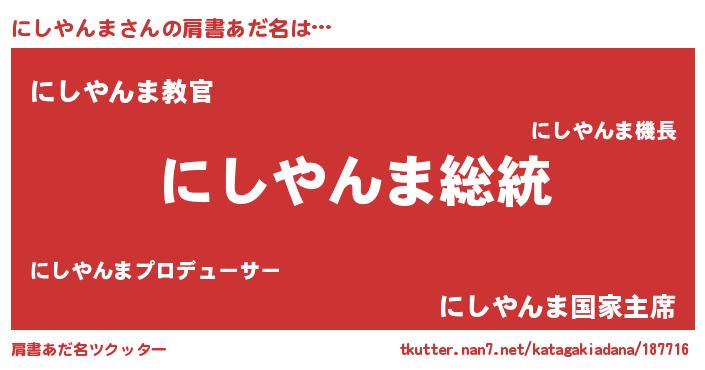 | 意味不明あだ名 | 『自称にしやんま』『ペロリンにしやんま』 |