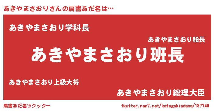 | 意味不明あだ名 | 『とにかく怪しいあきやまさおり』 |