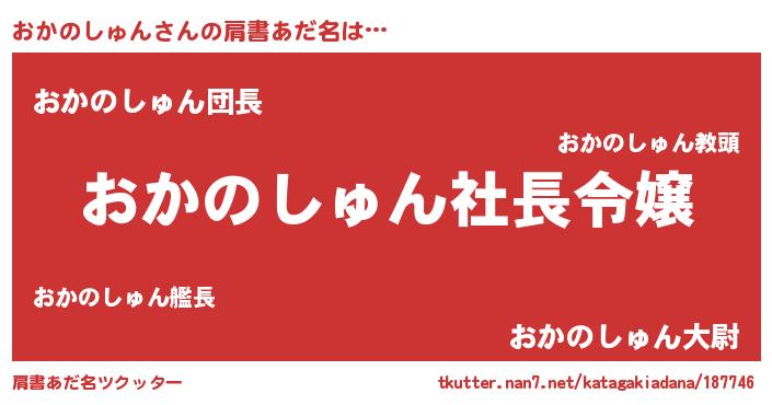 | 男性向けラノベタイトル風あだ名 | 『おかのしゅんの憂鬱』 |