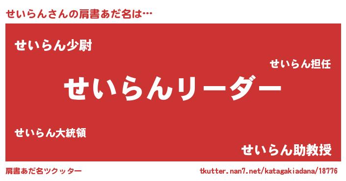 | 意味不明あだ名 | 『とにかく怪しいせいらん』 |