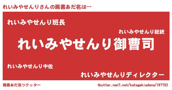 | 男性向けラノベタイトル風あだ名 | 『れいみやせんりの憂鬱』 |