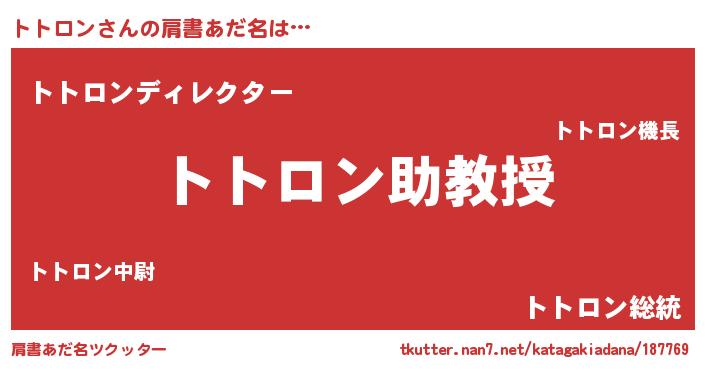 | ヘコむあだ名 | 『つくし』『トトっぺ』『トトにゅー』 |