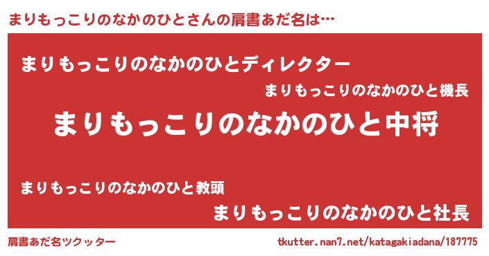 | 男性向けラノベタイトル風あだ名 | 『マリモッコリノナカノヒトスレイヤー』 |
