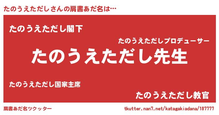 | 意味不明あだ名 | 『永久保存たのうえただし』 |