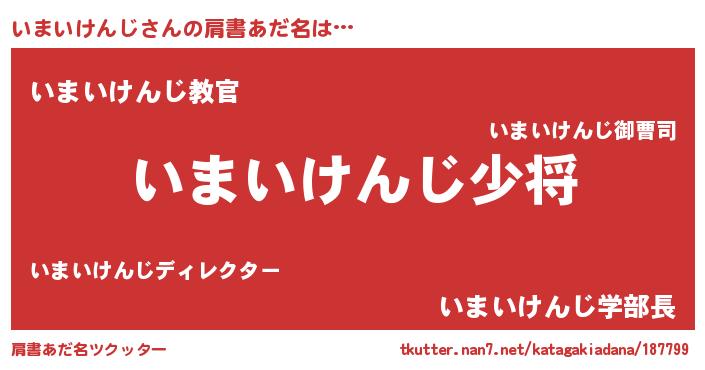 | 男性向けラノベタイトル風あだ名 | 『転生したらいまいけんじだった件』 |