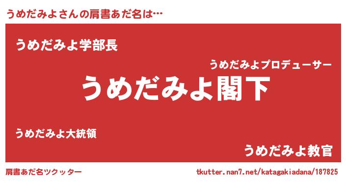 | 意味不明あだ名 | 『自称うめだみよ』『永久保存うめだみよ』 |