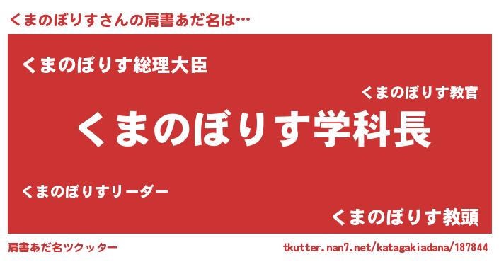 | 男性向けラノベタイトル風あだ名 | 『ノーゲーム・ノークマノボリス』 |