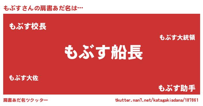 | 欧米人風あだ名 | 『もぶす・ステッグマイヤー』 |