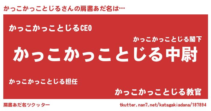 男性向けラノベタイトル風あだ名 | 『転生したらかっこかっことじるだった件』 |