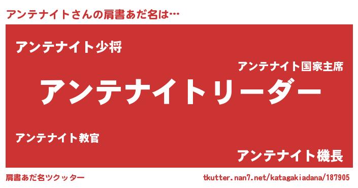 | 意味不明あだ名 | 『とにかく怪しいアンテナイト』 |