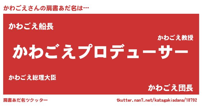 | 欧米人風あだ名 | 『アンジェラ・かわごえ』 |