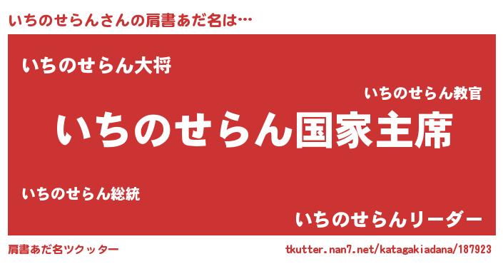 | 意味不明あだ名 | 『いちのせらんフォーエバー』 |