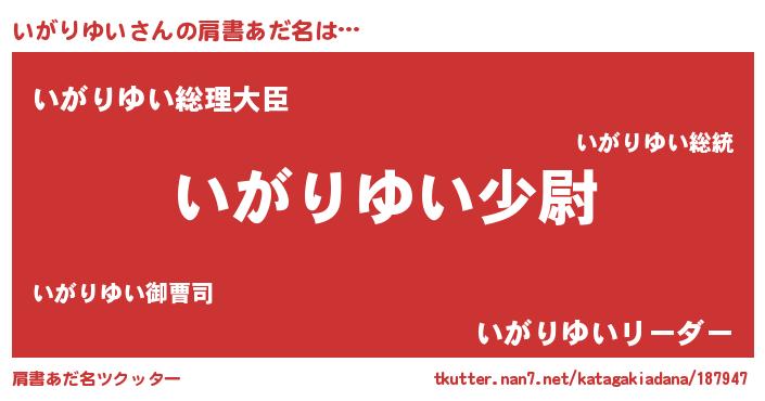 | 意味不明あだ名 | 『ニラ科いがりゆい属』『自称いがりゆい』 |