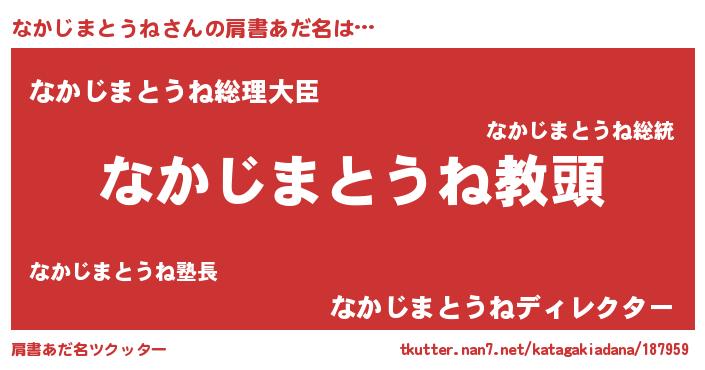 | 男性向けラノベタイトル風あだ名 | 『なかじまとうねという概念が存在しない退屈な世界 』 |