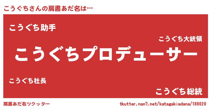 | ヒーロー風カッコイイあだ名 | 『愛の使者こうぐち』『究極戦士コウグチ』 |