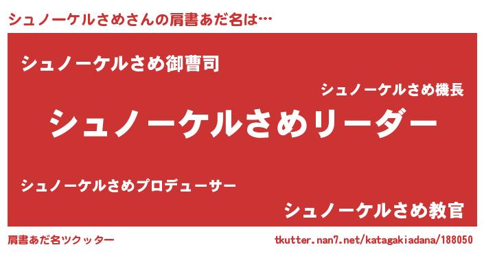 | 胡散臭い通販商品みたいなあだ名 | 『信頼と実績のペンダント…その名も「シュノーケルさめ」』 |