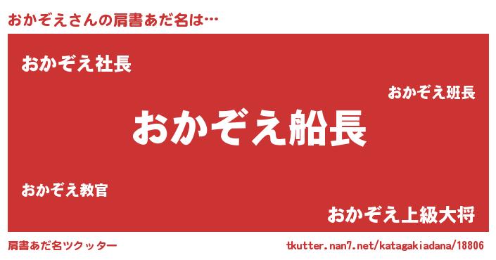 | 男性向けラノベタイトル風あだ名 | 『緋弾のオカゾエ』『おかぞえの憂鬱』 |